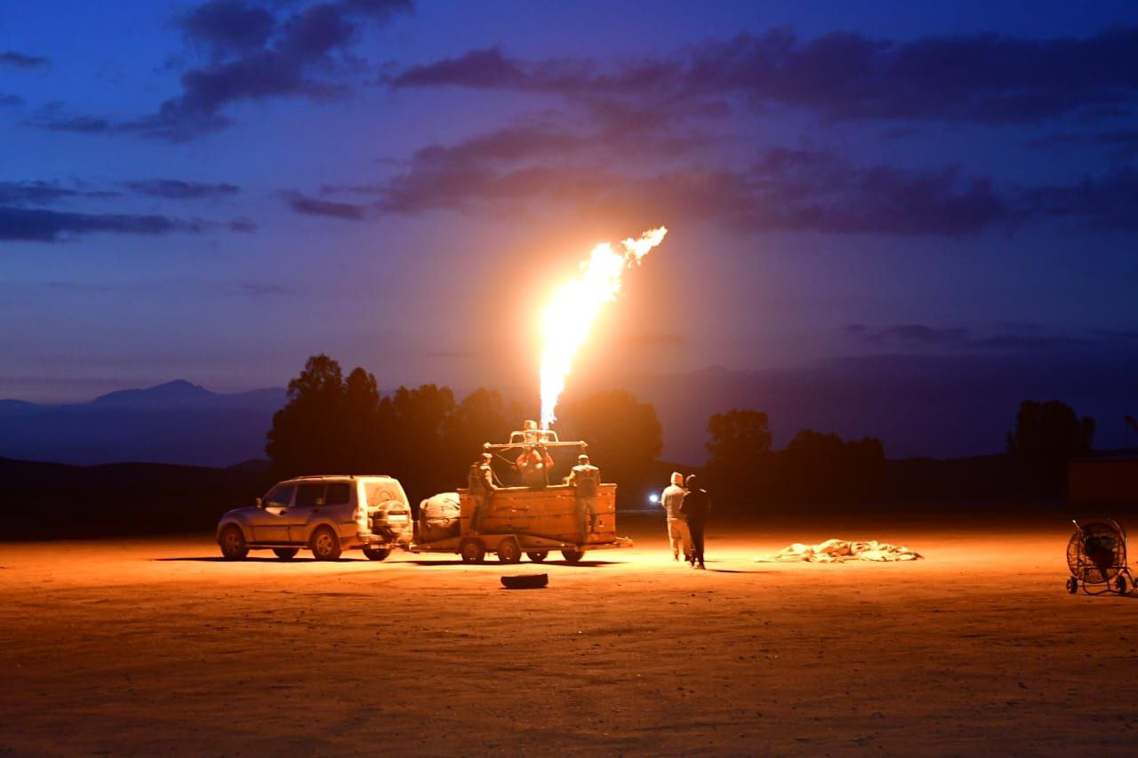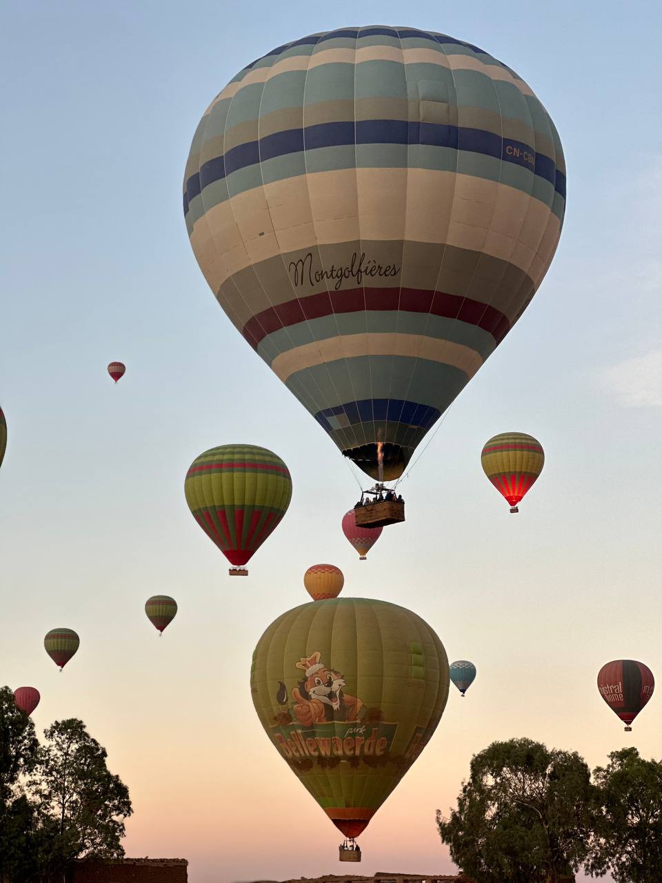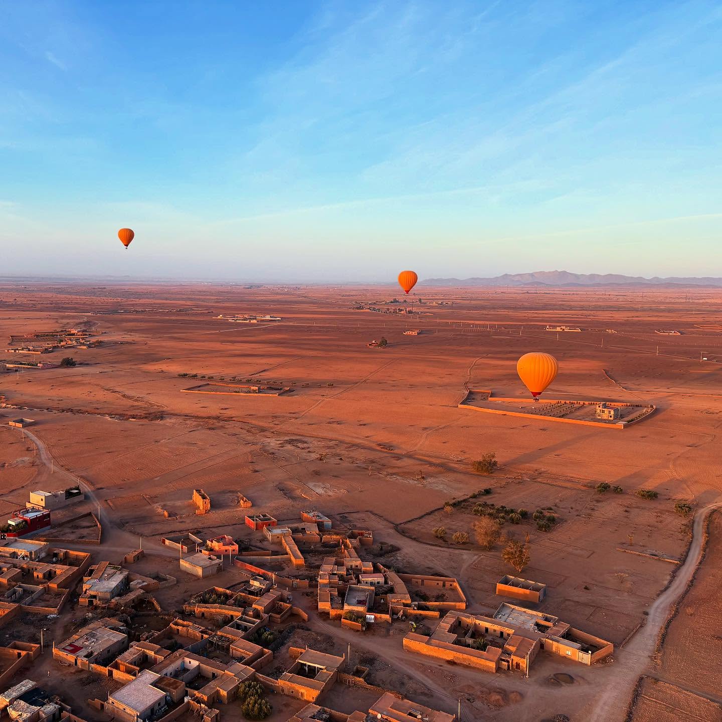 Soar above the Atlas Mountains and desert landscape in a magical hot air balloon experience.