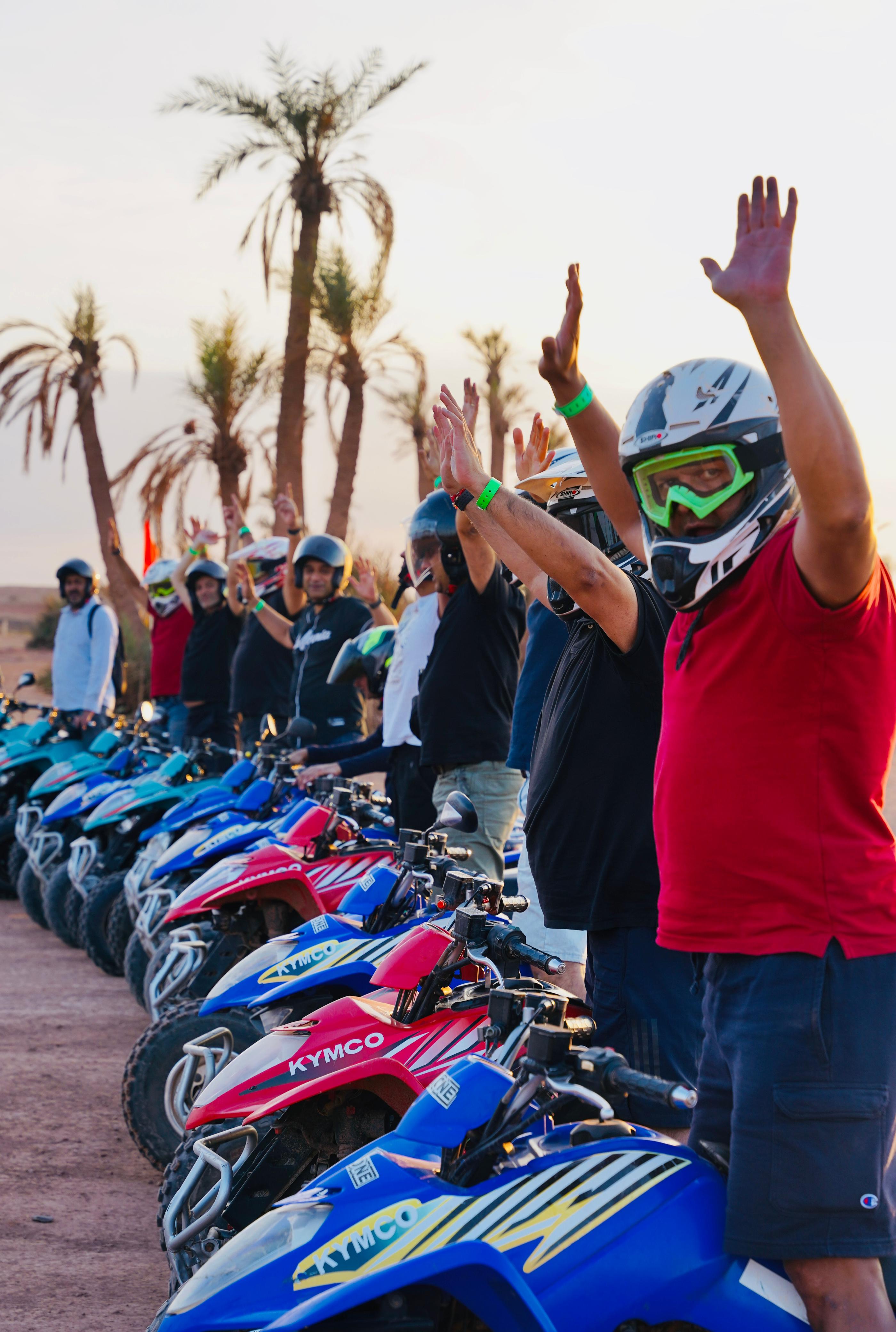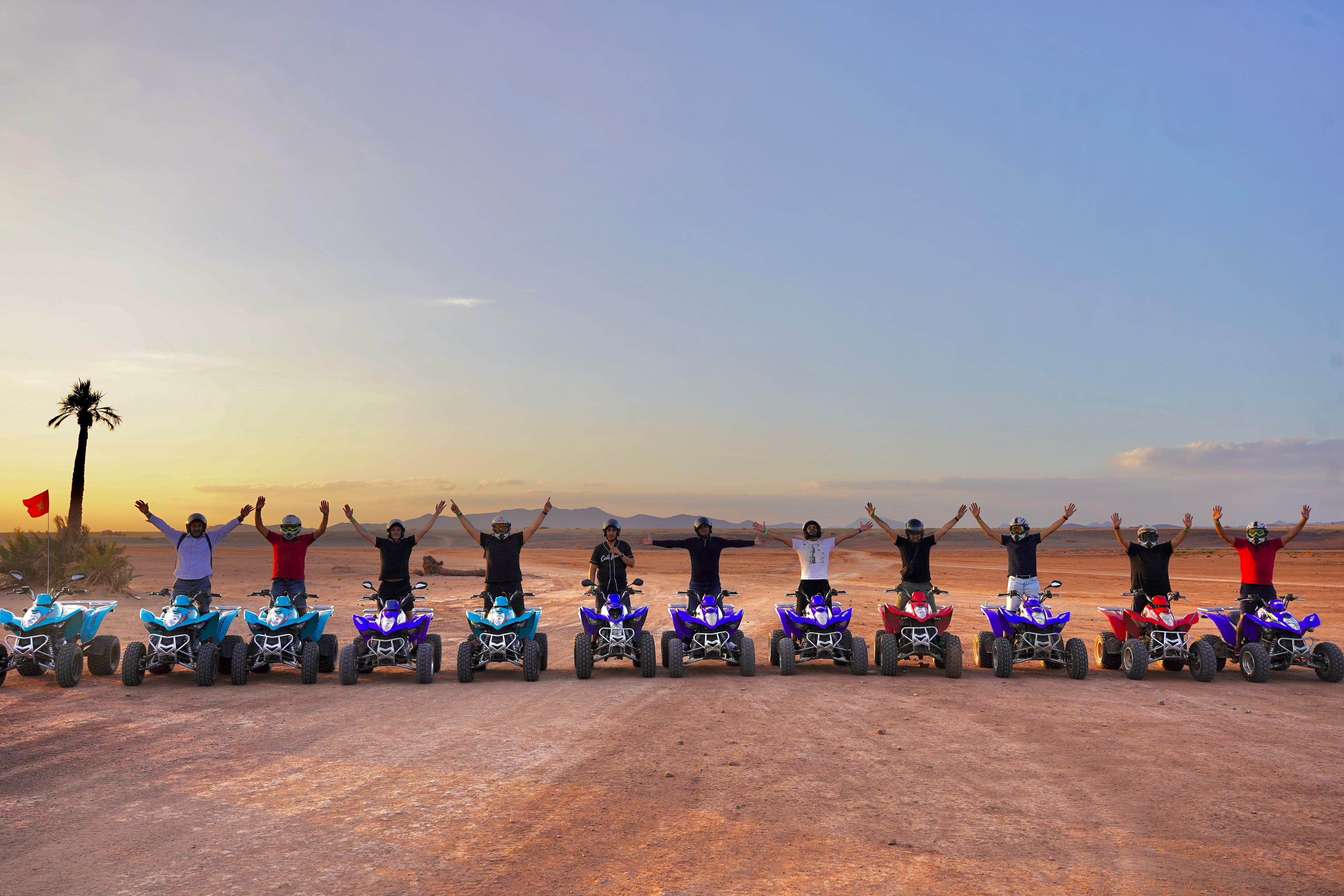 Experience the magic of Moroccan sunrise on a quad bike adventure through the Palmeraie, with breathtaking views of the Atlas Mountains, traditional villages, and desert landscapes.
